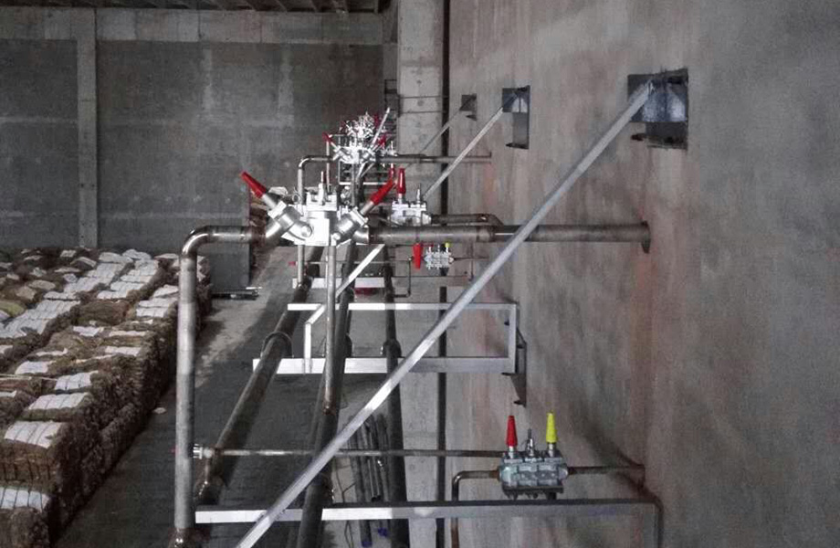 技術實現形式:系統采用2套比澤爾高溫螺桿四組并聯制冷機組(4*CSH8563-125),1套10 m3桶泵機組,2臺海密梯克冷媒泵,全自動熱氣化霜,不銹鋼冷風機,纖維布風管送風系統,雙相不銹鋼管,丹佛斯ICF系列組合閥。